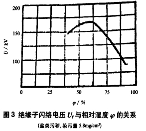 電纜分支箱地處交通要道,背靠山坡,面向公路,塵土很大,絕緣子表面的積塵較多,在污層受潮時。其中所含可溶性鹽類及酸堿成分溶解于水中,使表面電導率驟增,泄露電流許多增加,大大下降閃絡電壓。一般說來,絕緣子的污閃電壓隨其污染程度的增加而下降。污染嚴峻時,跟著污染程度持續增加,污閃電壓的下降已很緩慢,但這時污閃電壓常常現已低于作業電壓了。單調污穢的電阻較大,它并不下降絕緣子的閃絡電壓,一般當空氣相對濕度小于50%~70%時,沿面閃絡電壓不會下降;高于這數值時,跟著濕度增加,閃絡電壓敏捷下降,如圖3所示。實際工作中,絕緣子污閃事端都發生在霧、露、陰雨綿綿等高濕度的氣候.由于在這種條件下、積塵中水深性的鹽類溶解,使污層成為了半導體,大大增加泄露,下降閃絡電壓。本次事端正值當地千載難逢的大雨期間,而開關柜柜體的密封較差,柜內相對濕度已達90%以上,開關柜的操作安排安排嚴峻腐蝕,以至于徹底不能正常操作,由臟污沿面放電的進程的評論可知,污層的電阻越大,泄露電流越小,放電展開越困難,閃絡電壓也相應進步。在同樣污染和濕潤條件下,介質表面形狀、兩極間的沿面最短距離即泄露距離是影響表面電阻和閃絡電壓的重要要素。泄露距離增加,污閃電壓也增加。不同成都的污穢情況對線路及變電站絕緣的影響程度是不同的,因而應根據不同的污移情況,采納相應的絕緣標準保證電網安全工作"。現在,咱們用泄露比距來估量臟污條件下絕緣子的耐污功用。由于我局所轄電網為渝中區,被定為三級污區,按變電站設備考慮泄瀾比距應大于4cm/MkV。