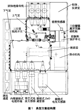 配用電流互感器、電壓互感器對一次主電路的電流.電壓進行檢測.保護與監督,通過控制和保護單元完成遙控,遙測、遙調(可運用數字化控制和保護單元)。環氧澆注穿芯式電流互感器、插接式電壓互感器與電流/電壓傳感器可任選。其他部分,如操動組織.控制和保護單元、氣室外的二次回路、電纜室.泄壓通道等仍置于大氣中,便于監督與保護。