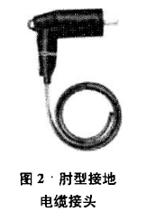 終端頭、雙通套管、帶電指示器和不銹鋼箱組成,采用結構緊湊的全封閉設計,電纜完全處于全密封狀態,須先拆除電纜封帽、堵蓋露出金屬雙頭螺桿才能驗電。以往拆電纜頭前都未驗電,而僅通過觀察帶電顯示器來判斷電纜是否帶電(規程L1中未明文規定),若帶電顯示器發生故障而又無其它安全保護措施,則會危及檢修人員的安全。雖然國內多個廠家針對電纜分支箱、箱式變及環網開關柜制作的肘型接地電纜接頭(見圖2)可用來完成最后的接地工作,但無法做到之前電纜頭拆除工作的安全保護,也就無法完成完整的技術措施。而本文研制的電纜分支箱驗電接地工具(見圖3)就圓滿解決了該問題,可完成電纜分支箱停電工作時必須實施的一系列安全技術措施,保障檢修人員的人身安全。