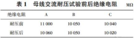 交流耐壓試驗(yàn)值為出廠的80%,即 76 kV,耐壓時(shí)刻為1 min,耐壓進(jìn)程中無擊穿、閃絡(luò)和反常動(dòng)靜,試驗(yàn)前后絕緣電阻見表1。
