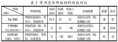 環(huán)網(wǎng)柜焊接氣箱常用資料首要有20g鋼板、不銹鋼板(1Cr18Ni9Ti)、防銹鋁板(5A05,5052)等。其功用對比見表2。
